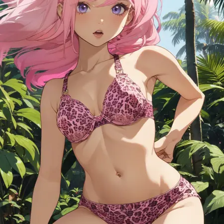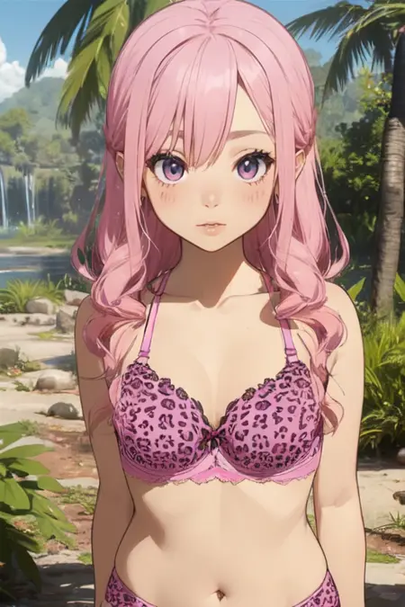 | Trained Words | pink hair,navel,outdoors,leopard print,tree,collarbone,long hair,day,blush,((1girl)),bikini,solo,medium breasts,bare shoulders,swimsuit,looking at viewer,strapless,pink eyes,nature,cowboy shot,pink bikini,stomach,cleavage,bare arms,strapless bikini,bra,underwear,panties,floating hair,pink bra,parted lips,pink panties,underwear only,very long hairCopied! |