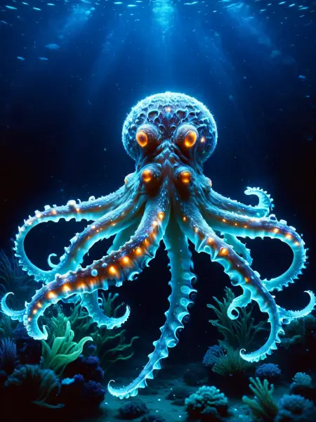 オブジェクトやシーンに生物発光の膜を付与するよう学習されています。実際には、やや神秘的な照明が加わった一般的な生物発光です。