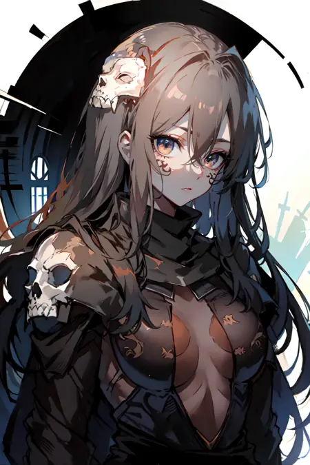 PS:如果你不喜欢它生成的头骨,可以在AD中使用“国王哈桑(命运)”,它经过训练能生成破损的头骨——在头部、斗篷上、盔甲上、腰胯上,总之,建议参考示例和下方提示词以获得更好理解。