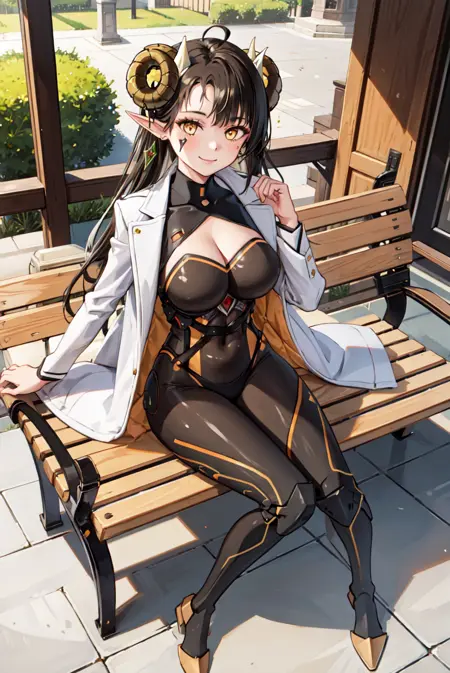 Tags: ccrosselle, cleavage cutout, open coat, bodysuit, earrings, jewelry, sheep horns
