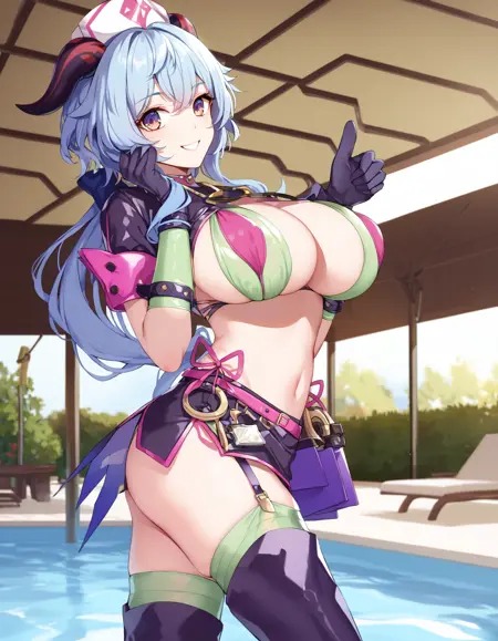 衣装が正しく表示されない場合は、以下の強調プロンプトを追加してください: swimsuit, bikini, nurse cap, gloves, skirt, thighhighs,thighhighs boots