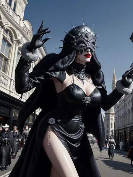 Departing a bit from the classical look, this lora generates images of women with their eyes covered by a mask, grill or veil, usually with a head piece. See the metadata for trigger words.