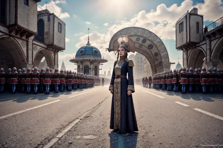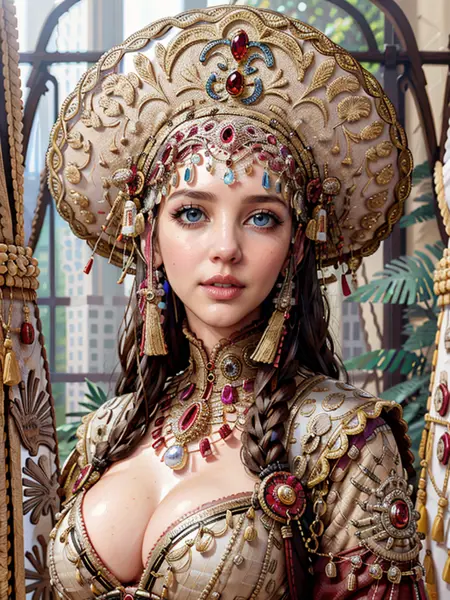 This LORA is focused on generating kokoshnik, huge head pieces in the style of 16th to 20th century Russian and Slavic countries. I had created a previous model called Slavic Crowns - Panache which was trained on a wide variety of headpieces from different regions and time periods. Thanks to @netgoblin for filling me in about the Kokoshnik or traditional Russian headdress worn by women and girls to accompany the trapezoidal dress called a sarafan. I think the concept deserves further study so I created at least eight more lora that focus on specific contours and shapes of kokoshnik. For example, Arrowhead, Disk, Fan, Ring, Mitre, Bicorn, Weird and covered eyes. I am going to do one more that combines all the training data and concepts trained into one, Kokoshnik-All.