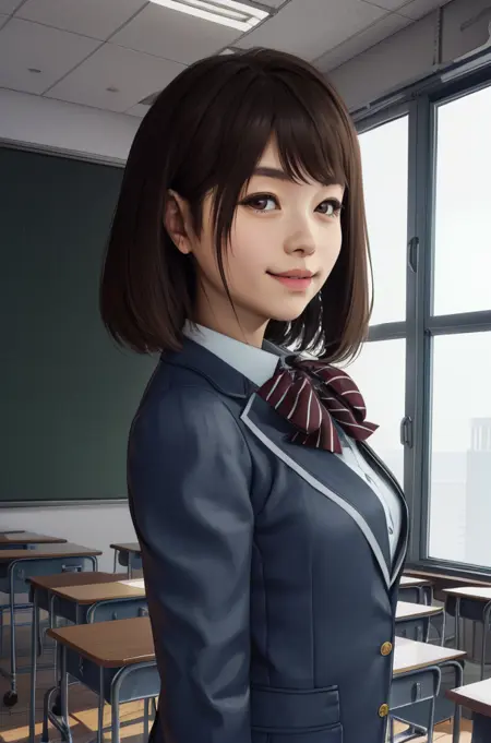 Kyouko, brown eyes, brown hair, - medium hair, or short hair,