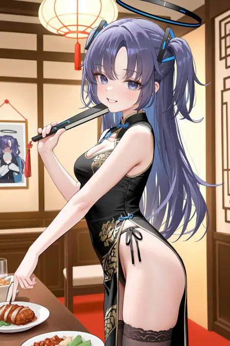 Not all additional prompts are required for generating the costume, remove some as you wish. Weight recommendation is 0.7~0.9, should work for other costumes too, lower it if you see irremovable clothing. Since hairstyle prompts are included, you can change Yuuka's hairstyle all you want.