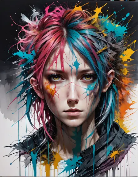Triggerwords: crgf, messy, abstract, oil painting, in the style of carne griffiths