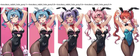 SDXL 版本包含所有触发词,最新版 Pony Diffusion 仅在 deco rabbit hole 数据集上训练。