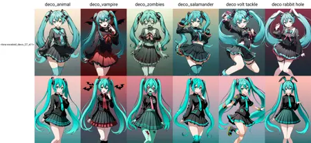 These LoRA are trained on a collection of popular images inspired by the cover artwork for the vocaloid artist DECO*27