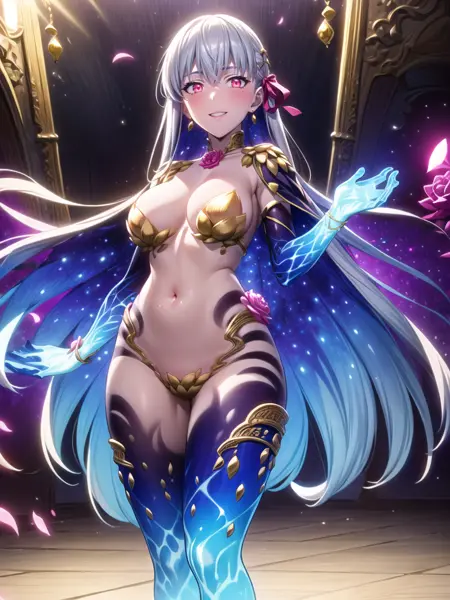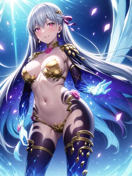 | Trained Words | 1girl,flower,multicolored_hair,large_breasts ,long_hair,hair_ribbon,hair_between_eyes,grey_hair,gradient_hair,cowboy_shot,colored_skin,colored_inner_hair,collar,clothing_cutout,cleavage,breasts,body_markings,blue_skin,blue_hair,bikini_armor,armor,fate_(series),fate/grand_order,kama_(third_ascension),ribbon,Very long hair,jewelry,earrings,red eyes,white hair,navel,solo,smile,lotus,blush,metal collar,thighlet,grey hair,thighs,armlet,pink ribbon,petals,revealing clothes,parted lipsCopied! |