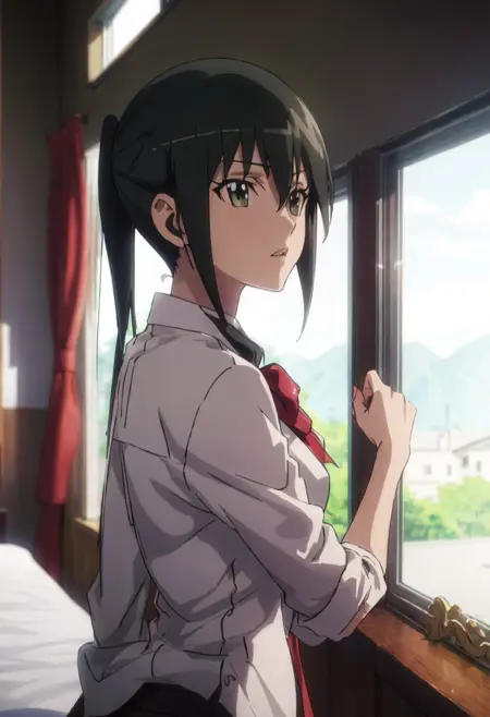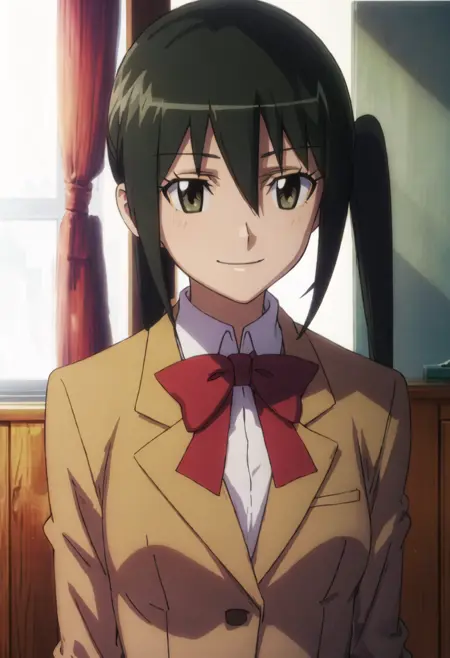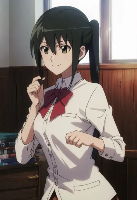 The trigger word is mitsuba_mutsumi_seitokaiyakuindomo, and the pruned tags are black_hair, long_hair, ponytail, brown_eyes. When some features (e.g. hair color) are not so stable at some times, you can add these them into your prompt.