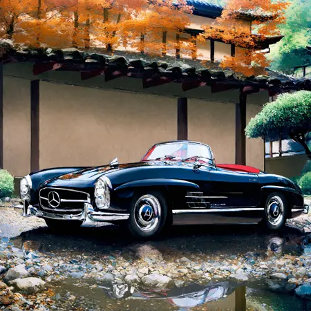 此 LORA 能生成相当逼真的梅赛德斯-奔驰 300 SL(W198)图像。
