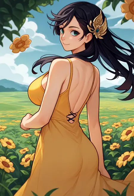 Trigger + Appearance: rorbrunhilde, black hair, hair ornament