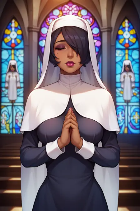 キャラクタータグ: リップスティック、片方の目に髪を垂らす、化粧、濃い肌