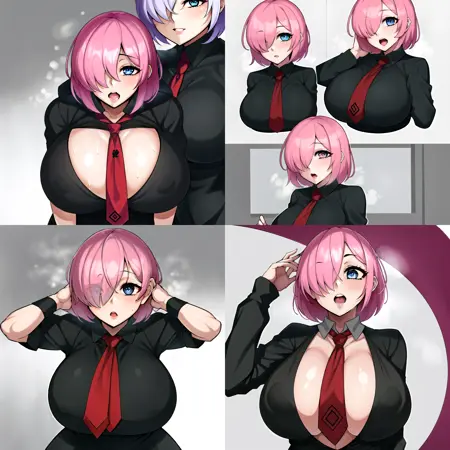 装甲,装甲连衣裙,// 灰色连帽夹克,领结连衣裙,红色领带,// Mash Kyrielight(危险野兽),动物耳朵,毛边领口,毛边装饰,过膝袜,// 美国旗比基尼,旗帜图案,过膝袜