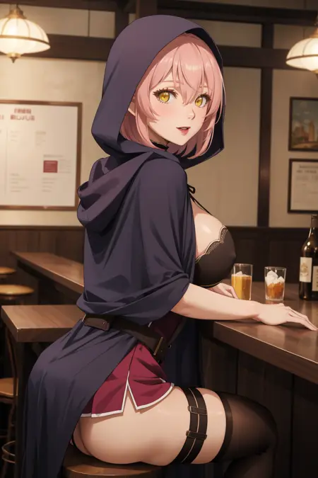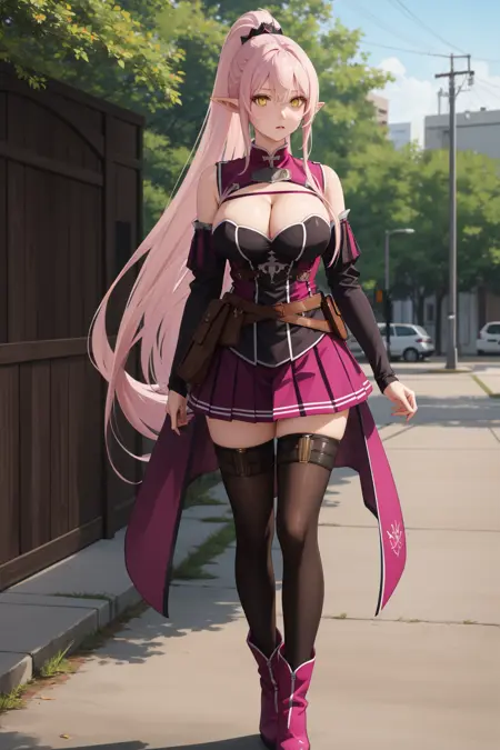 唯一重要的标签是:“ariane,黄色眼睛,长发,尖耳朵,头发遮住眼睛,侧辫,非常长的头发,高马尾,粉色头发”