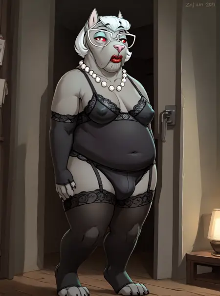 Trained with 65 images of Saggy Hellhound Lady from Helluva Boss via sd-scripts
