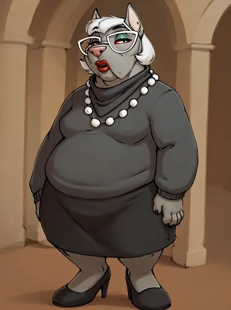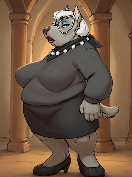 Trained with 65 images of Saggy Hellhound Lady from Helluva Boss via sd-scripts