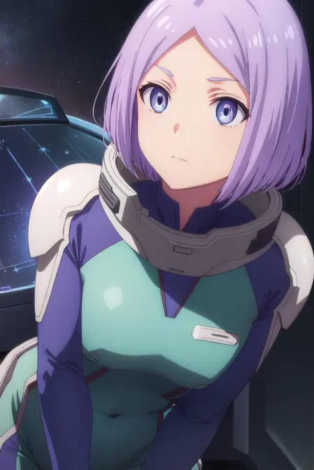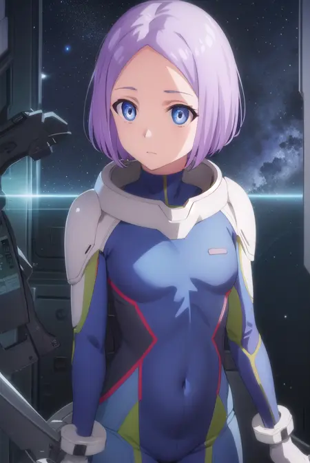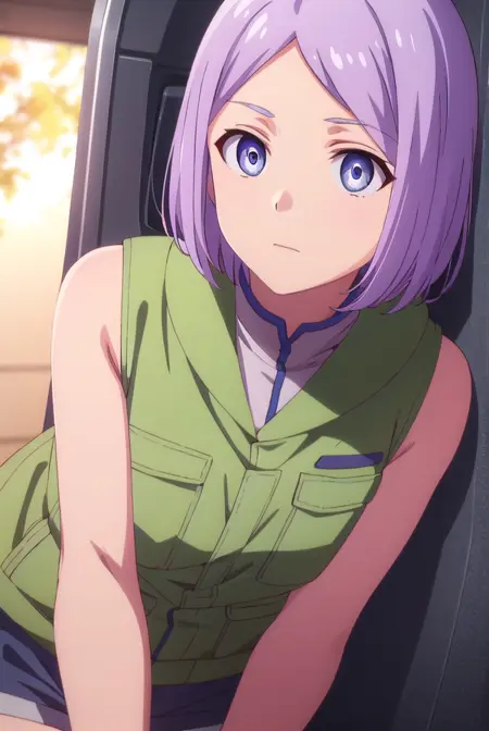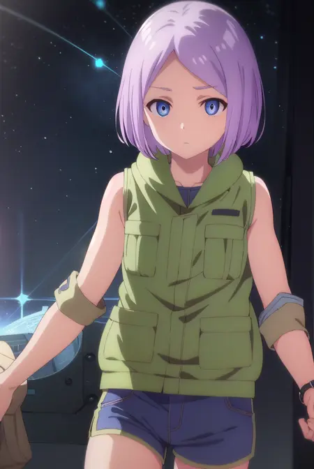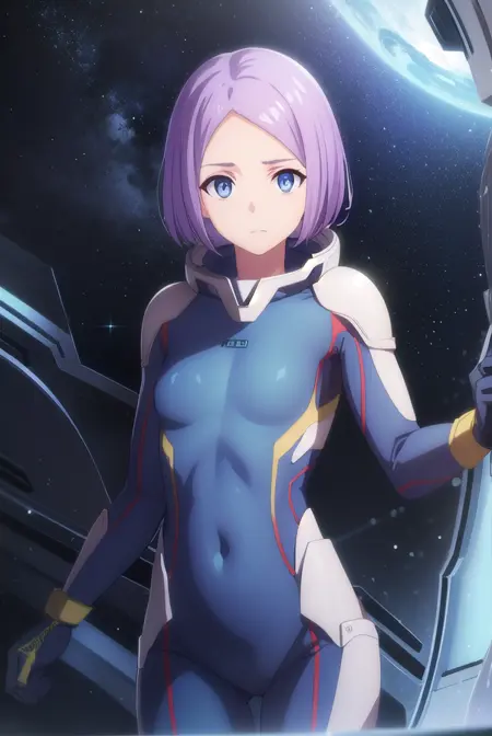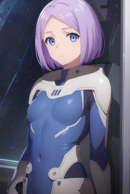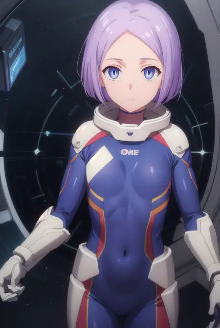 luca esposito, short hair, blue eyes, purple hair, (forehead:1.2),