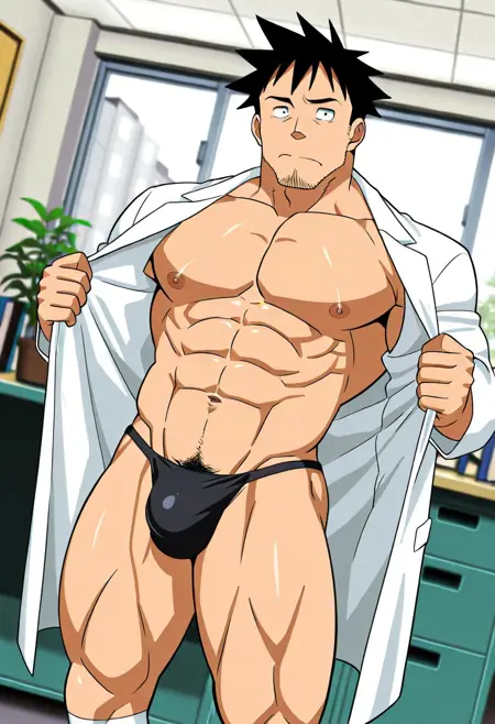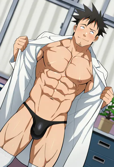 动画角色baramuscularhandsomeasianmuscular malemasculineblack hairyaoianime characteryoung manjapanesemalemanshort hairasian mancharactersscientistlab coatteacherblack eyeshunkdemi-chan wa kataritaimale characterinterviews with monster girlsmuscular manstubblesgoateesanpakuathletic bodytetsuo takahashishihakuganjapanese man