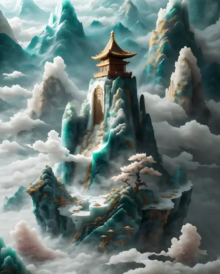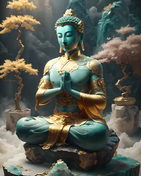 本来炼的《国风 | 金玉山川雕刻微景观》,后面发现出金玉雕刻佛像效果更好,也希望大家能发现更多的玩法