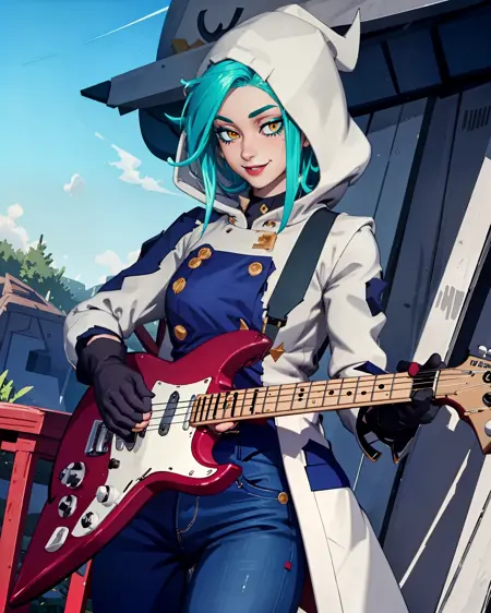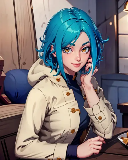 Appearance: 1girl, aqua hair, yellow eyes, makeup