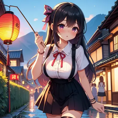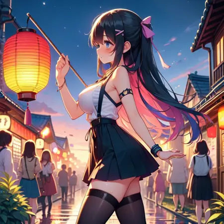注意:気に入らなければ使用しないでください。提灯、チェックポイント、LoRAは互いに深刻に干渉するため、繰り返し試行する必要があります。棒と提灯はコントロールが難しく、非常に使いにくいです。成功確率を上げたい場合は、棒を削除してください。空や街の描写は不要で、エラーが増える原因になります。