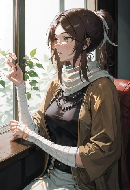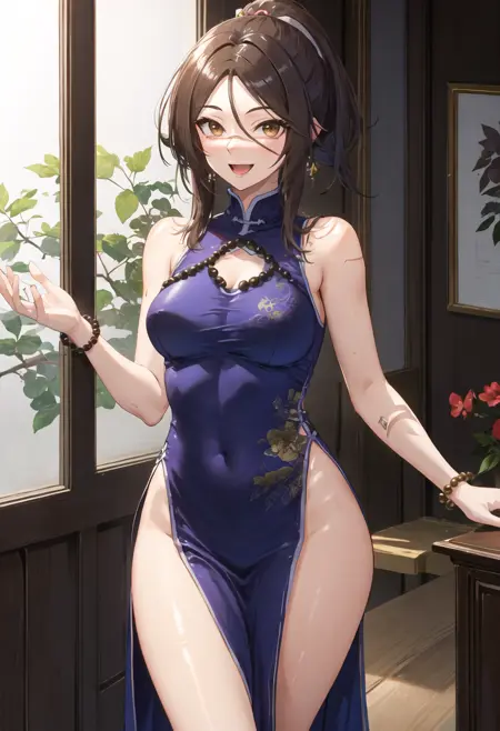 - The pruned character tags are brown_hair, breasts, brown_eyes, large_breasts, yellow_eyes, ahoge, ponytail. You can add them into prompts when core features (e.g. hair color) of character is not so stable.