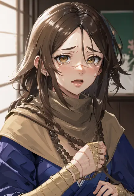 The trigger word is sugitani_zenjubou_fgo, and the pruned tags are brown_hair, breasts, brown_eyes, large_breasts, yellow_eyes, ahoge, ponytail. When some features (e.g. hair color) are not so stable at some times, you can add these them into your prompt.