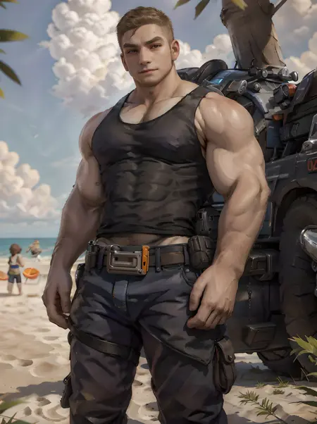 I made JD Fenix (his complete name is James Dominic Fenix which shared name from Marcus's deceased friend, Dominic Santiago) from Gears of War. He's son of Marcus Fenix, a well-known legendary Gear, and his mother Anya Stroud, also a well-known Gear too. JD appear in Gears of War 4 and 5. He's a member of Delta Squad, alongside with Kait and Del. He's trained by Clayton Carmine during his early day as a COG Gear. JD on Gears 4 has different appeareance from Gears 5--he's bald and has beard. In this version, I made JD from Gears of War 4 which he has short hair and no beard.