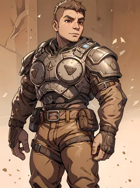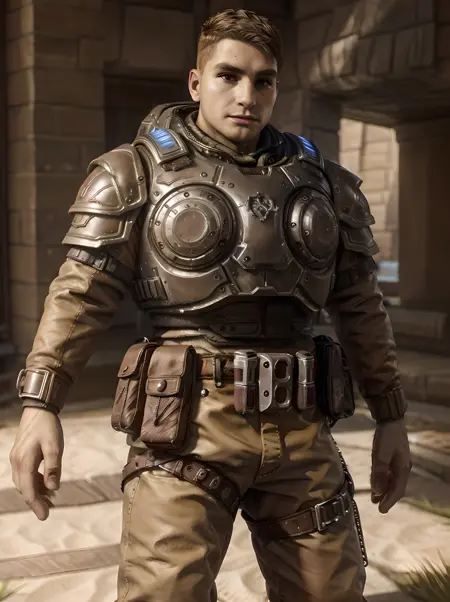 I made JD Fenix (his complete name is James Dominic Fenix which shared name from Marcus's deceased friend, Dominic Santiago) from Gears of War. He's son of Marcus Fenix, a well-known legendary Gear, and his mother Anya Stroud, also a well-known Gear too. JD appear in Gears of War 4 and 5. He's a member of Delta Squad, alongside with Kait and Del. He's trained by Clayton Carmine during his early day as a COG Gear. JD on Gears 4 has different appeareance from Gears 5--he's bald and has beard. In this version, I made JD from Gears of War 4 which he has short hair and no beard.