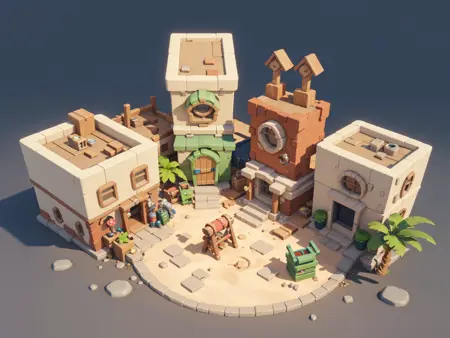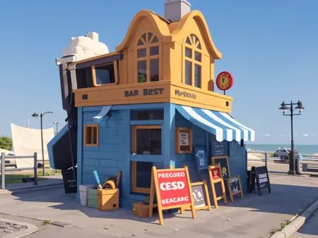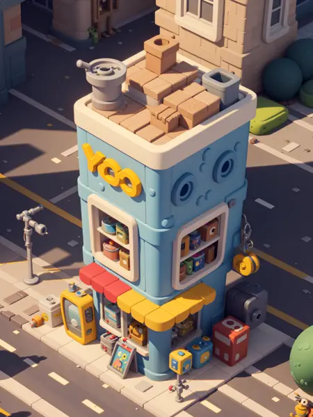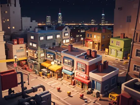 You would like various cartoonish scenes with a toon, Pixar style, and 3D prompt. REV is a good CKPT to use, and for smaller resolutions, single buildings can be created, while larger resolutions can be used for sandbox environments. Everyone is encouraged to try and share their creations. Don't forget to leave a free like!