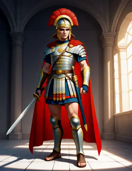 romanlegionary, armor, weapon, holding, holding weapon, sheath, breastplate, cape, chainmail
