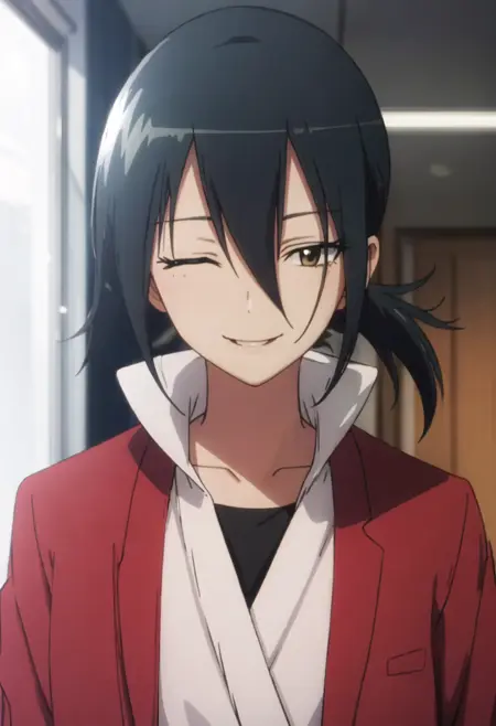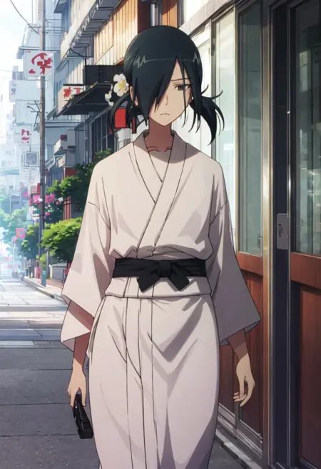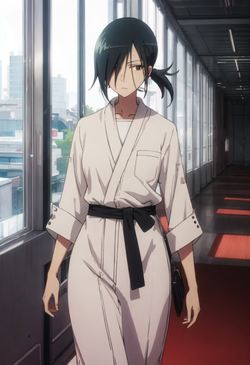 - The pruned character tags are black_hair, ponytail, hair_over_one_eye, black_eyes. You can add them into prompts when core features (e.g. hair color) of character is not so stable.