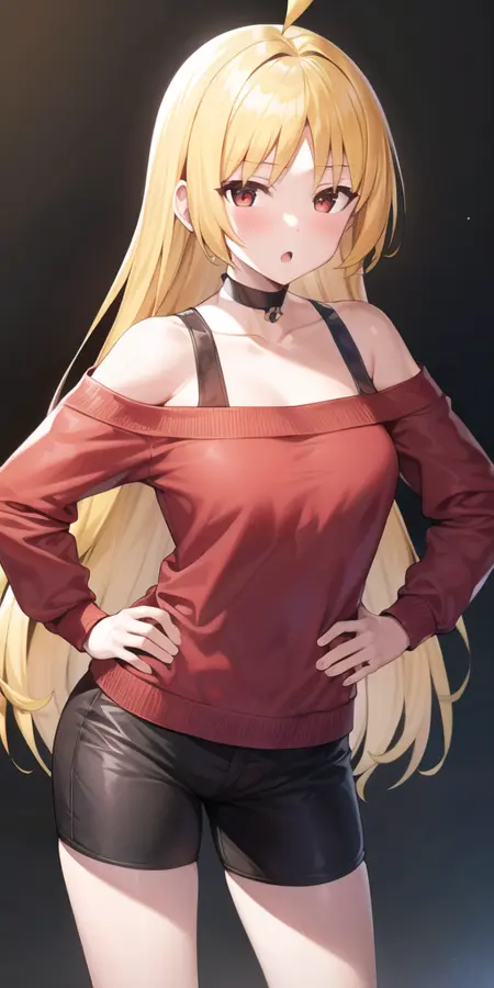 추천 프롬프트: 빨간 눈, 긴 머리, 아호게, 금발, 블랙 코르셋, 오프숄더, 번드(자세한 부분은 내 샘플 사진을 참고하세요)