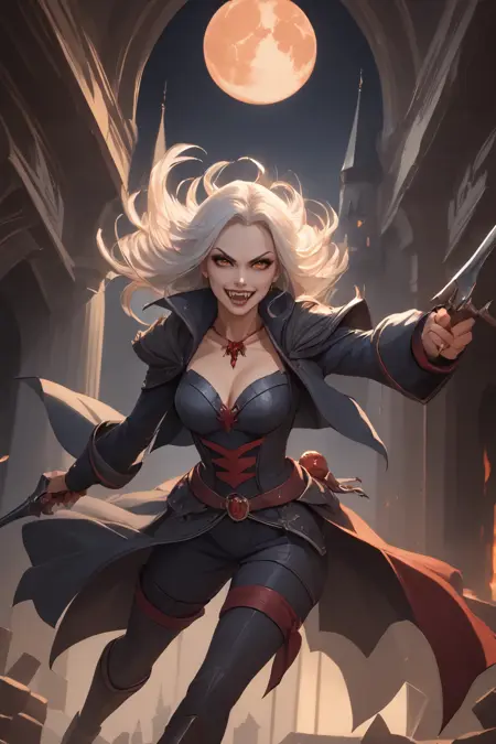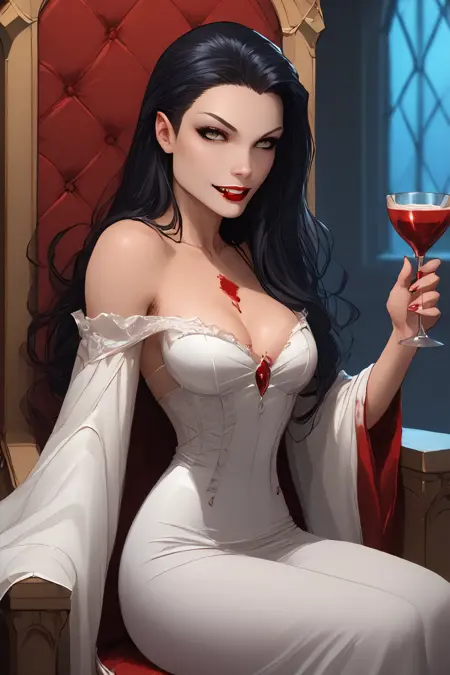 Creates Female Vampires. No real trigger. I love Vampires and i always imagined female Vampires as elegant pale woman with long dress. So i used much images with dresses. So Prompt with Dress, wings, bats, glowing red eyes, should give good results.
