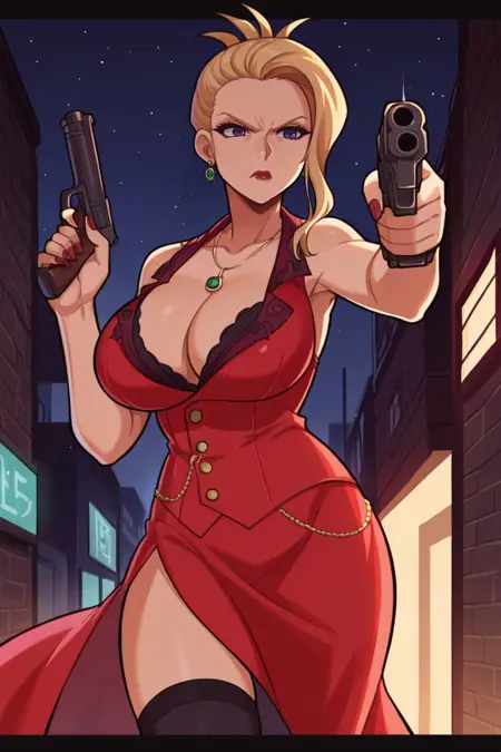 『ファイナルファンタジーVII(リメイク)』のスカーレット。Pony Diffusion V6 XL で学習済み。強度0.8-1.0でテスト済み。