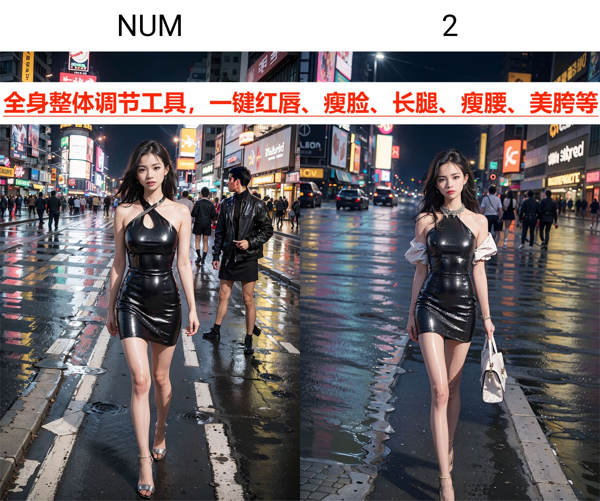 Intelligent whole body adjustment tool - red lips, slim face, long legs, slim waist, and beautiful hips