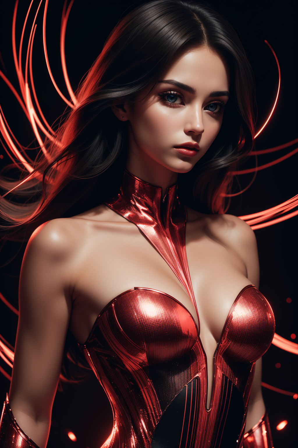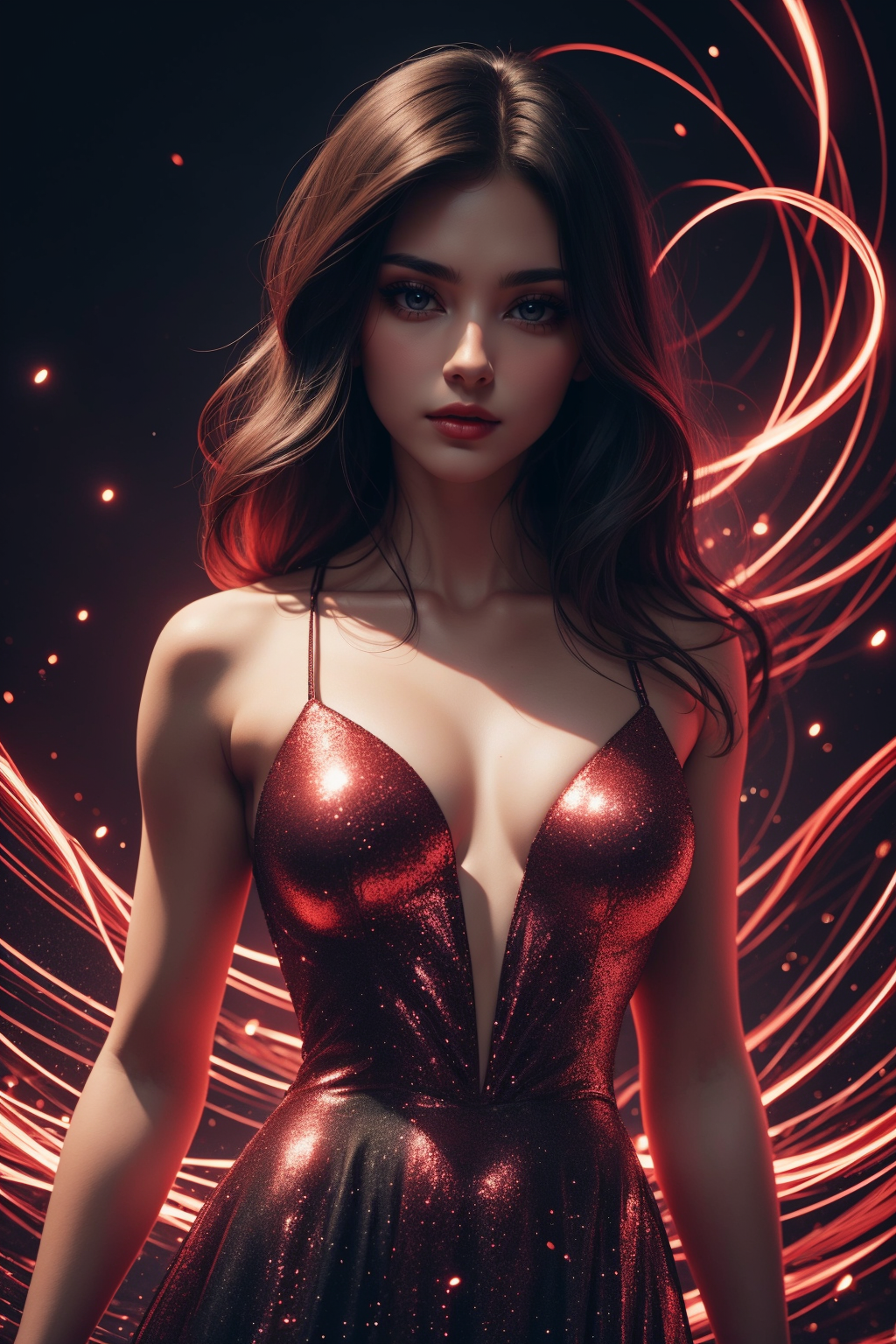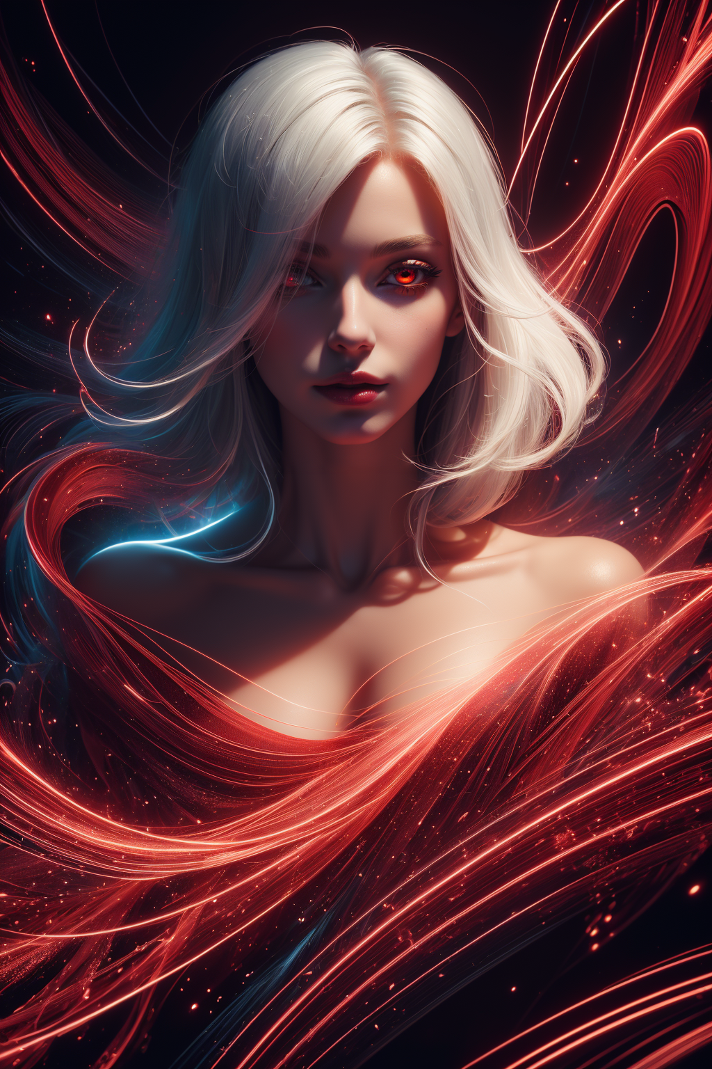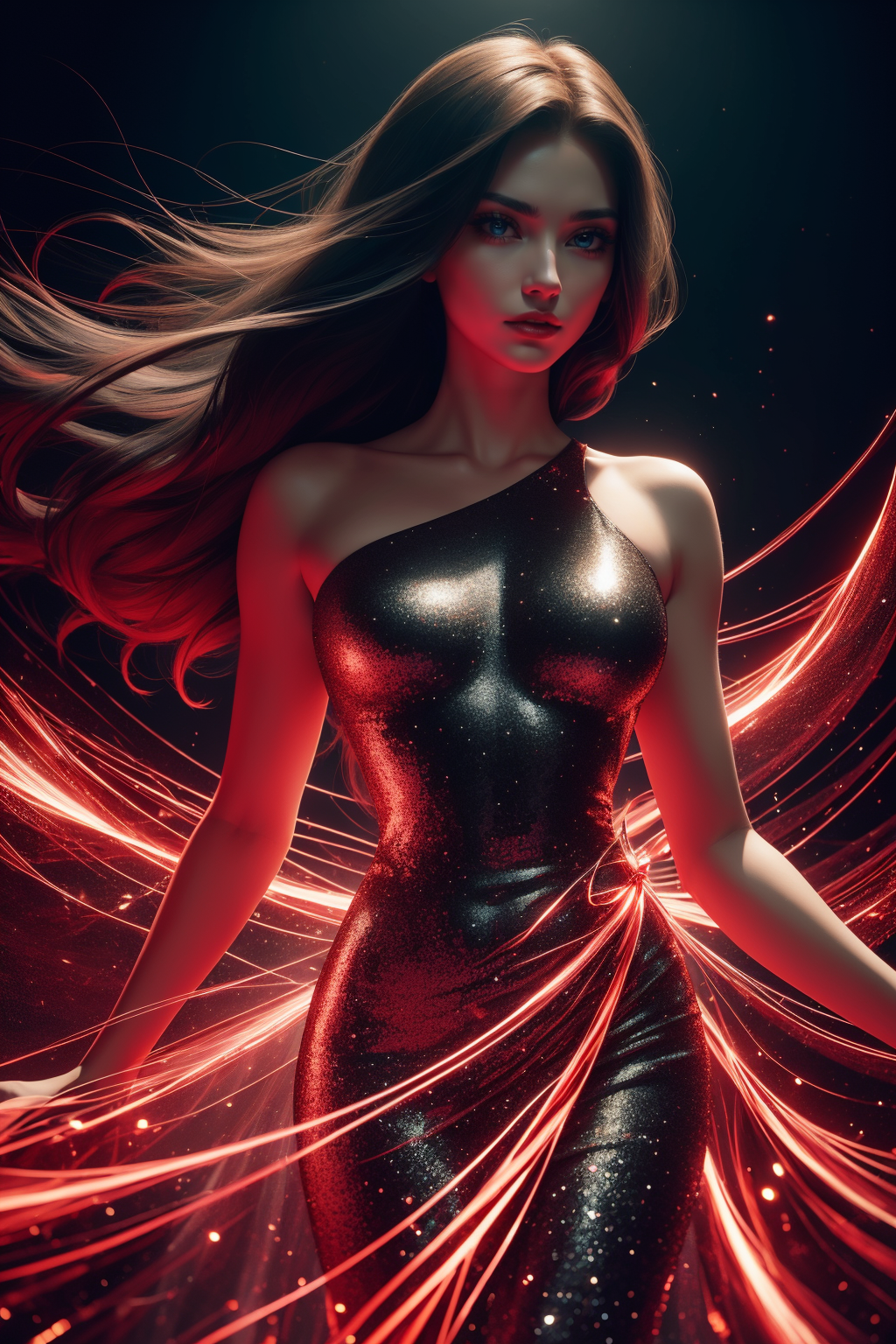 red theme, illuminating the dark, red luminescence, ethereal red waves, weaving light, light trails