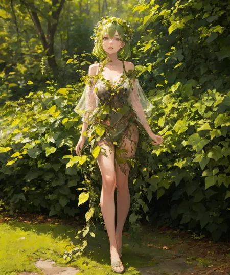 Leaf Clothes: This Lora allows you to create leaf clothes and simply natural clothes... Why didn't I post it? Because it just doesn't work all the time. Sometimes you'll have pretty plant clothes and other times... Just a green outfit. (You can occasionally create mannequins. I'm talking about mannequins: puppet).