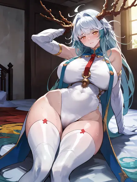 Silong:silong,white dress,white gloves,white thighhighs,(horns),(wings),(tail)