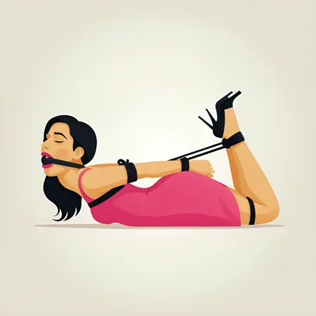 Bondage related: (color) + gag | (color) + rope | natural rope | feet linked to hands | feet linked to shoulders | feet linked to hair | bound + (bodypart)