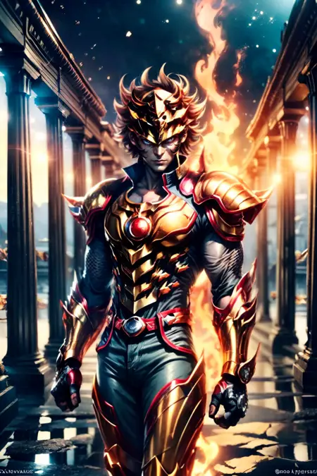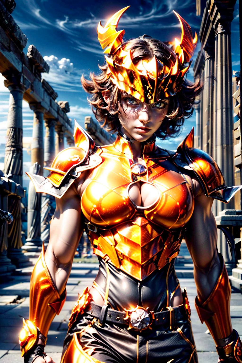 ライオネットのソウマ、聖闘士星矢オメガ、オレンジ色の鎧、ライオン頭型のヘルメット
