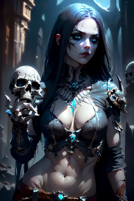 골골한 여자 네크로맨서와 시체 복종자? 절대 그렇죠. 모든 게임에서 제 가장 좋아하는 직업입니다. 프롬프트를 하지 않으면 일부 모델이 매우 음란해집니다. 그래서 뼈, 육체, 시체, 해골, 사망 마법 같은 요소는 좋은 결과를 낳습니다. 부정적 프롬프트를 줄이면 더 나은 출력이 나올 수 있습니다. 저는 그림에서 "네크로"라는 단어를 "네크로맨서"로 바꿔야 했습니다. 왜냐하면 '네크로'는 이용 약관 위반 항목이기 때문이며, LoRA를 만들 때는 그것을 고려하지 못했습니다. 따라서 이미지를 업로드할 때는 트리거로 '네크로' 대신 '네크로맨서'를 사용하세요. 마찬가지로 해야 합니다. 추후 2버전에서 수정할 수도 있습니다.