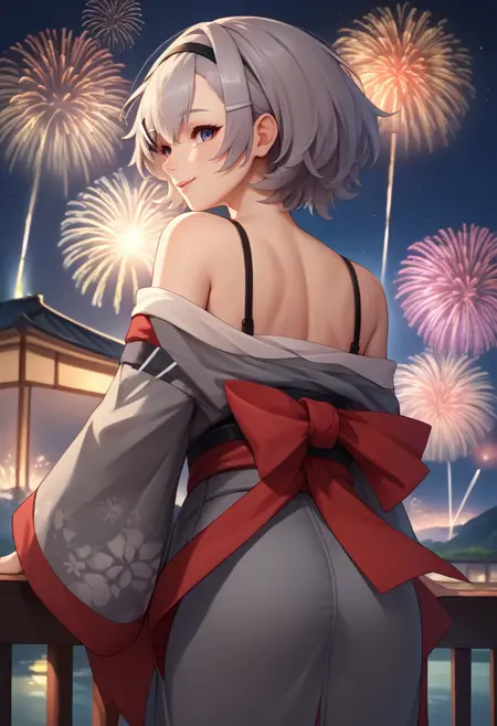 Default Outfit: renodef, hairclip, hairband, shirt, sleeveless, sideboob, red necktie, detached sleeves, gloves, skirt, pantyhose, bare shoulders