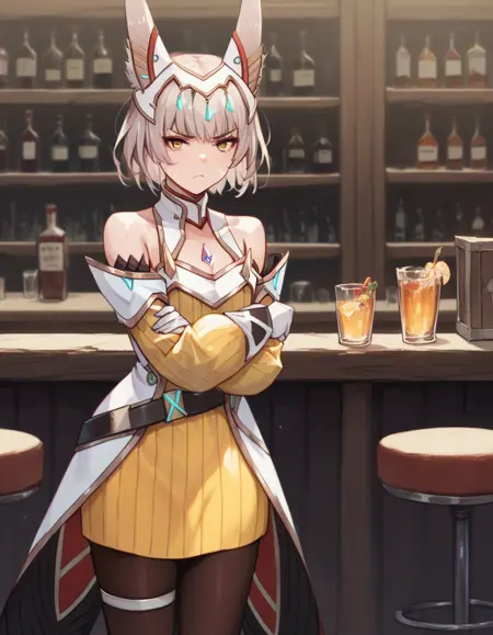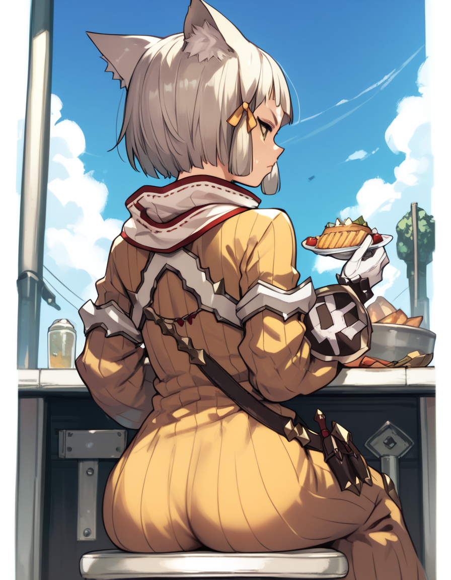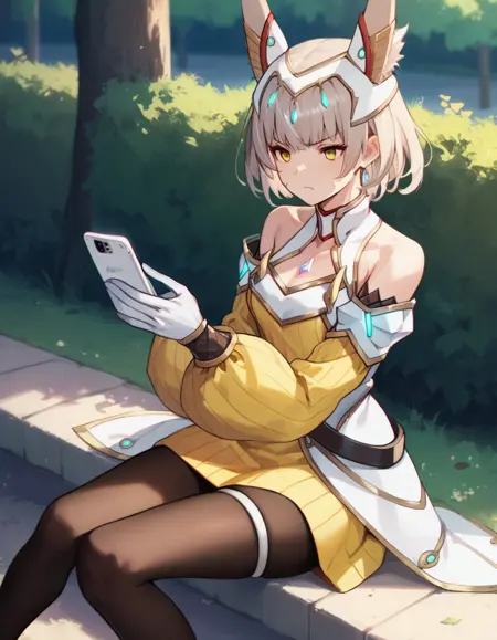 niadrvrxb2, cat ears, cat girl, white gloves, yellow bodysuit