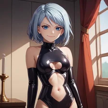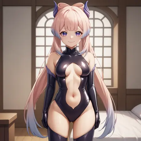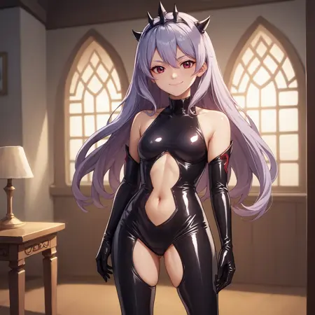 As you can see in examples, with some prompting magic it can do more than that. E.g. latex skirt can consistently turn it from leotard into a dress, latex bodysuit might turn it into a full bodysuit with cutout, pelvic curtain is also interesting modification. It can also be easily colored with <color> latex princess.