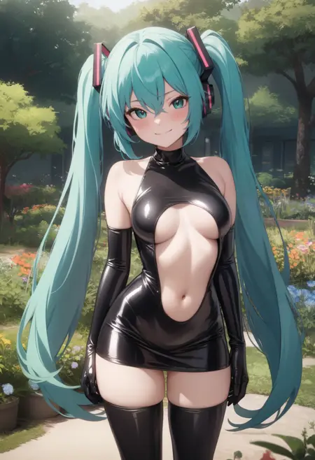 As you can see in examples, with some prompting magic it can do more than that. E.g. latex skirt can consistently turn it from leotard into a dress, latex bodysuit might turn it into a full bodysuit with cutout, pelvic curtain is also interesting modification. It can also be easily colored with <color> latex princess.