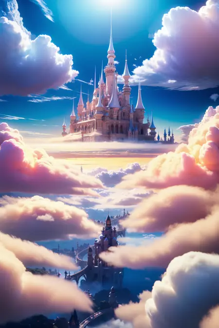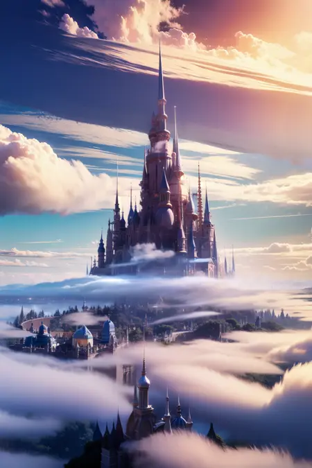 1: mhxy, 구름, 풍경, 인물 없음, 하늘, 판타지, 구름 위, 야외, 흐린 하늘, 성, 도시.