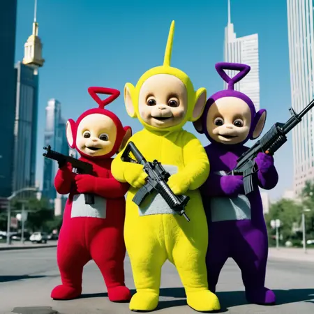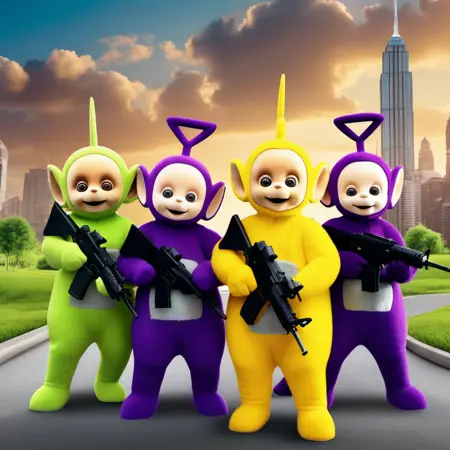 Teletubbies is a British children's television series created by Anne Wood and Andrew Davenport for the BBC. The programme focuses on four differently coloured characters known as the Teletubbies, named after the television screens on their bellies. Recognised throughout popular culture for the uniquely shaped antenna protruding from the head of each character, the Teletubbies communicate through gibberish and were designed to bear resemblance to toddlers.