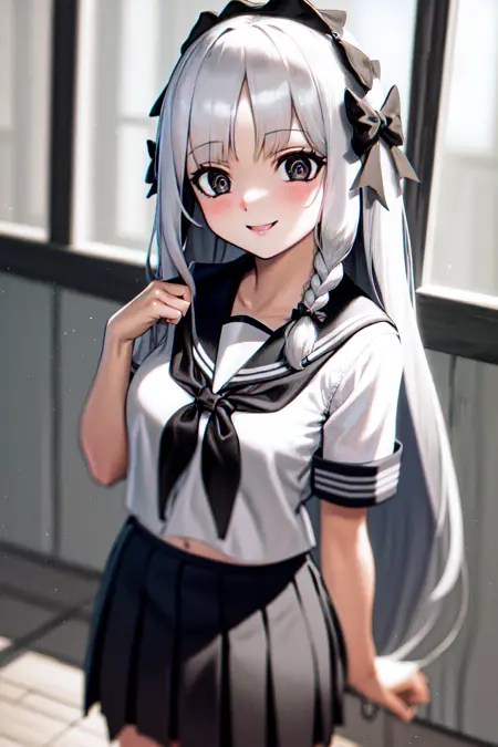 キャラクタートリガー: 1girl francesca black eyes braid hair bow